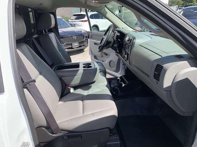 Power Door Locks, Heavy-Duty Rear Automatic Locking Differential, Bed Liner (LPO), Electric Rear-Window Defogger, Radio: AM/FM Stereo w/MP3 Compatible CD Player, Solar-Ray Deep-Tinted Glass, Air bagsfrontaldriver and right-front passenger with Passenger Sensing System (Always use safety belts and the correct child restraints for your child's age and size. Even in vehicles equipped with air bags and the Passenger Sensing Systemchildren are safer when properly secured in a rear seat in the appropriate infantchild or booster seat. Never place a rear-facing infant restraint in the front seat of any vehicle equipped with an active frontal air bag. See the Owner's Manual and chil, Air bagshead curtain side-impactfront and rear outboard seating positions with rollover sensor (Head curtain side air bags are designed to help reduce the risk of head and neck injuries to front and rear seat outboard occupants on the near side of certain side-impact collisions. Always use safety belts and the correct child restraints for your child's age and sizeeven in vehicles equipped with air bags. Children are safer when properly secured in a rear seat in the appropriate infantchi, Air bagsseat-mounted side-impactdriver and right-front passenger for thorax and pelvic protection (Head curtain side air bags are designed to help reduce the risk of head and neck injuries to front and rear seat outboard occupants on the near side of certain side-impact collisions. Always use safety belts and the correct child restraints for your child's age and sizeeven in vehicles equipped with air bags. Children are safer when properly secured in a rear seat in the appropriate infant, Air conditioningsingle-zone manual front climate control, Air damBlack, Alternator145 amps, Assist handlefront passenger (Also includes rear assist handles in the headliner on Extended and Crew Cab Models.), Audio system feature4-speaker system (Requires Regular Cab models. Not included when (5B5) power windowsdoors and locksSEO is ordered.), AUDIO SYSTEM FEATURESPEAKER SYSTEMIncludes 4 speakers on Regular Cab models and 6 speakers on Extended and Crew Cab models.), AUDIO SYSTEMAM/FM STEREO WITH MP3 COMPATIBLE CD PLAYERseek-and-scandigital clockauto-tone controlRadio Data System (RDS)speed-compensated volume and TheftLock, Audio systemAM/FM stereo with seek-and-scan and digital clock (Not available with (U2K) SiriusXM Satellite Radio.), Batteryheavy-duty 600 cold-cranking amps maintenance-free with rundown protection and retained accessory power, Brakes4-wheel antilockfront disc/rear drum, Bumperfront chrome (Includes Black bumper top caps.), Bumperrear chromestep-style with pad, Coat hooksrear driver and passenger side, Cruise controlelectronic with set and resume speedlocated on steering wheel, Cup holdersfront (Also includes rear cupholders on Extended and Crew Cab models.), CUSTOMER DIALOGUE NETWORK, DARK TITANIUMVINYL SEAT TRIM, Daytime Running Lamps with automatic exterior lamp control, DEFOGGERREAR-WINDOW ELECTRIC, DIFFERENTIALHEAVY-DUTY AUTOMATIC LOCKING REAR, Door handlesBlack, DOOR LOCKSPOWERincludes Remote Keyless Entry, Driver Information Center with odometertrip odometer and message center (monitors numerous systems depending on vehicle equipment level including low fuelturn signal 'on'transmission temperature and oil change notification) (Driver Information Center controls are operated through the trip button unless (UK3) steering wheel mounted audio controls is ordered. On 3SA3SF and 4SAincludes 8-point compass and outside temperature.), ENGINEVORTEC 4.3L V6 MFI(STD), EngineVortec 4.3L V6 MFI (195 hp [145.4 kW] @ 4600 rpm260 lb-ft of torque [351.0 N-m] @ 2800 rpm) (Requires T*10*03 or TC10753 models. Standard with T*10*03 or TC10753 models. Not available with (VYU) Snow Plow Prep Package or (Z82) Trailering package.), Exhaustaluminized stainless-steel muffler and tailpipe, Floor coveringGraphite-colored rubberized-vinyl, Framefully-boxedhydroformed front section, GLASSSOLAR-RAY DEEP-TINTED(all windows except light-tinted glass on windshield and driver- and front passenger-side glass) (With Regular Cab modelsincludes rear window. With Extended Cab modelsincludes rear and rear quarter windows. With Crew Cab models or (C49) rear-window defoggerincludes light-tinted rear window. Included with (PCM) Work Truck Preferred Package.), GlassSolar-Ray light-tintedall windows, GrilleBlack surround, GVWR6400 LBS. (2903 KG), GVWR6400 lbs. (2903 kg) (Standard on T*10703T*10903 and TC10753 models.), Headlampsdual halogen composite with automatic exterior lamp control and flash-to-pass feature, HeadlinerOpal Gray-colored cloth with matching retainer moldings, Instrumentationanalog with speedometerfuel levelengine temperatureand tachometer, Lampsdual cargo area lamps, LICENSE PLATE BRACKETFRONT, Lightinginterior with dome and reading lightsilluminated entry feature and backlit instrument panel switches, LPOBED LINER., Mirrorinside rearview manual day/night, MIRRORSOUTSIDE HEATED POWER-ADJUSTABLEBLACKMANUAL-FOLDING, Mirrorsoutside manualBlackmanual-folding, OnStardelete, Pickup boxWideside, Power outlets 2 auxiliary instrument panel-mounted with covers12-volt, REAR AXLE3.23 RATIO, Rear axle3.23 ratio (Refer to Engine/Axle chart for availability.), Rear wheel drive, REMOTE KEYLESS ENTRYwith 2 transmitters and panic button, Seat trimDark Titanium vinyl, SEATSFRONT 40/20/40 SPLIT-BENCH3-passengerdriver and front passenger manual reclining with outboard head restraints and center fold-down armrest with storage (STD), Seatsfront 40/20/40 split-bench 3-passengerdriver and front passenger manual reclining with outboard head restraints and center fold-down armrest with storage, SiriusXM Satellite Radiodelete, Spare tire lock keyed cylinder lock that utilizes same key as ignition and door, StabiliTrakstability control system with Proactive Roll Avoidance and traction controlincludes electronic trailer sway control and hill start assist, Steering column Tilt-Wheel